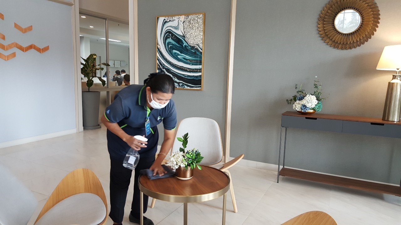 และที่สำคัญที่สุดอีกประการที่จำเป็นต้องคำนึงถึงคือ ความปลอดภัยจากไวรัส covid 19 โดยได้ตั้งจุดรับหน้ากากอนามัยบริเวณหน้างาน และติดตั้งจุดให้บริการเจลล้างมือทั่วทั้งงาน เพื่อบริการเแก่ผู้มาตรวจรับห้องชุดอีกด้วย