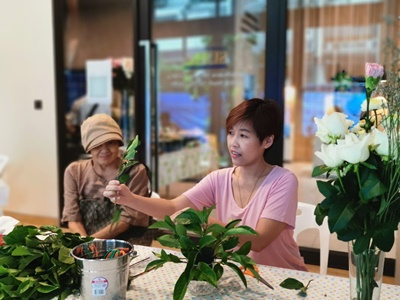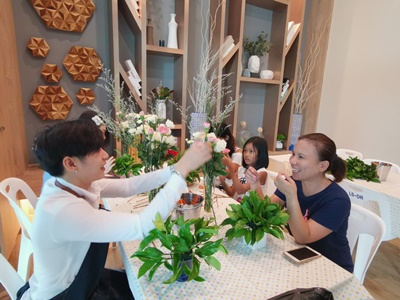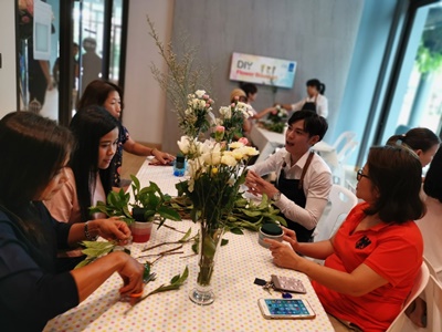 กิจกรรมจัดช่อดอกไม้ที่สร้างความสดชื่นและสร้างสีสัน ให้กับโครงการ ลุมพินี สวีท ดินแดง-ราชปรารถ ในวันเสาร์ที่ 24 สิงหาคม 2562 ที่ผ่านมา
