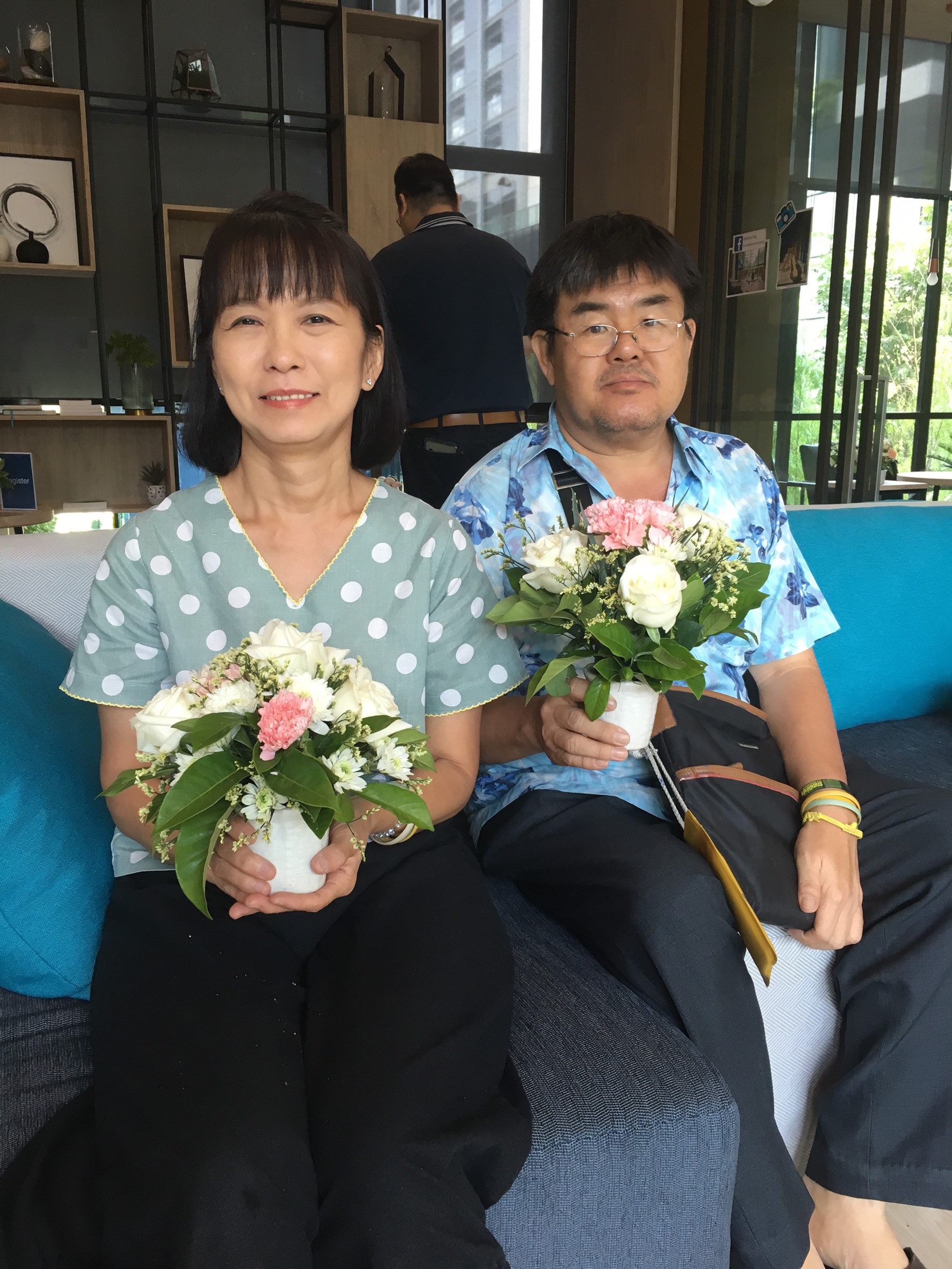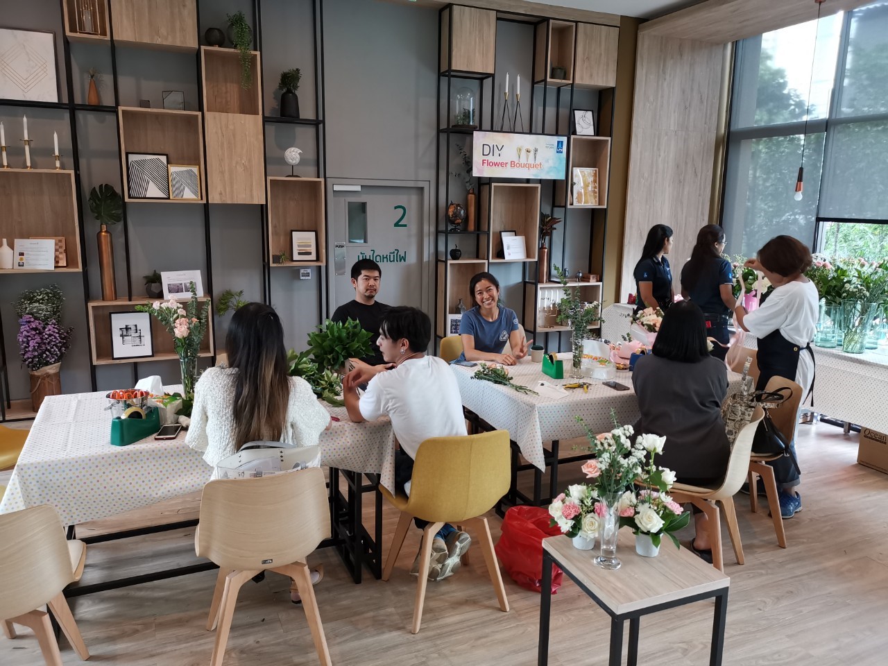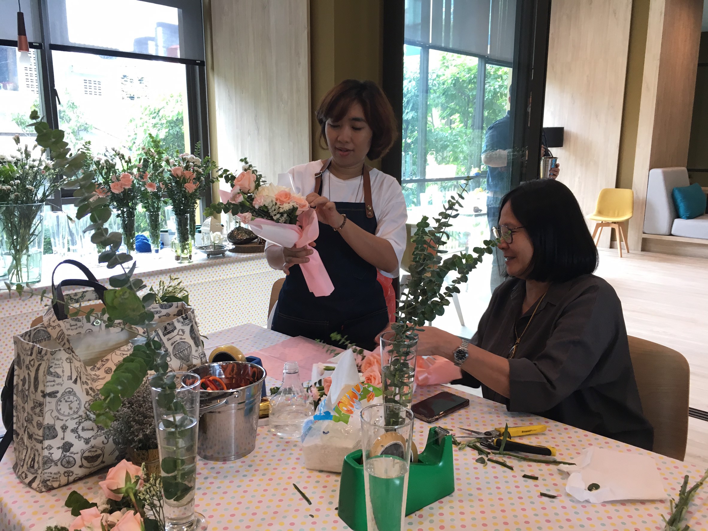 กิจกรรมจัดช่อดอกไม้ที่สร้างความสดชื่นและสร้างสีสัน ให้กับโครงการ ลุมพินี สวีท เพชรบุรี-มักกะสัน ในวันเสาร์ที่ 13 กรกฎาคม 2562 ที่ผ่านมา