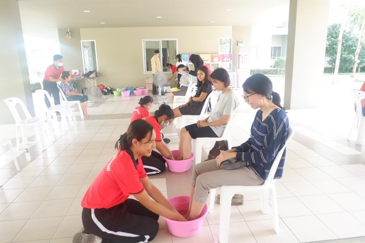 จนมาวันนี้ น้องนักศึกษาวิทยาลัยการแพทย์แผนไทย มหาวิทยาลัยเทคโนโลยีราชมงคลธัญบุรีที่ได้รับทุน มารวมตัวกันตอบแทนการ “ให้” ด้วยการนำเสนอกิจกรรมจิตอาสาในโครงการลุมพินี ทาวน์ชิป รังสิต-คลอง 1 ร่วมกับฝ่ายบริหารจัดการชุมชน โดยใช้ชื่อกิจกรรมว่า “จิตอาสา เราทำความดีด้วยหัวใจ” คอยให้บริการนวดผ่อนคลายเท้าให้กับเจ้าของร่วมและผู้พักอาศัยในชุมชน ซึ่งมีผู้สนใจเข้าร่วมกิจกรรมทั้งสองวันประมาณ 155 คน  ทั้งเด็ก วัยรุ่น ผู้ใหญ่ และผู้สูงอายุ สร้างความภาคภูมิใจให้กับบริษัทที่เป็นผู้ให้ ขณะเดียวกันน้องผู้รับก็มีความภูมิใจที่ได้เป็นผู้ให้ด้วยเช่นกัน