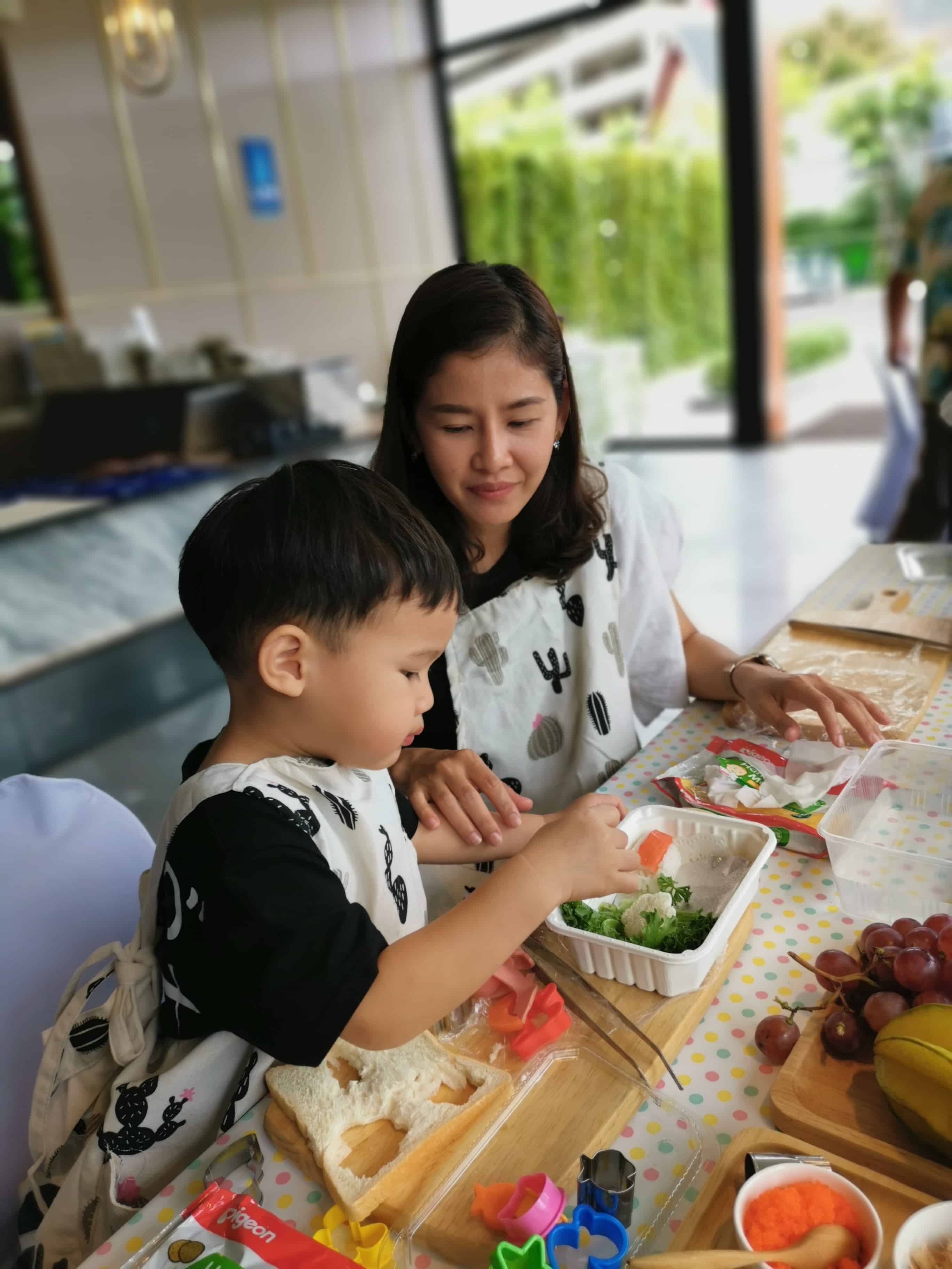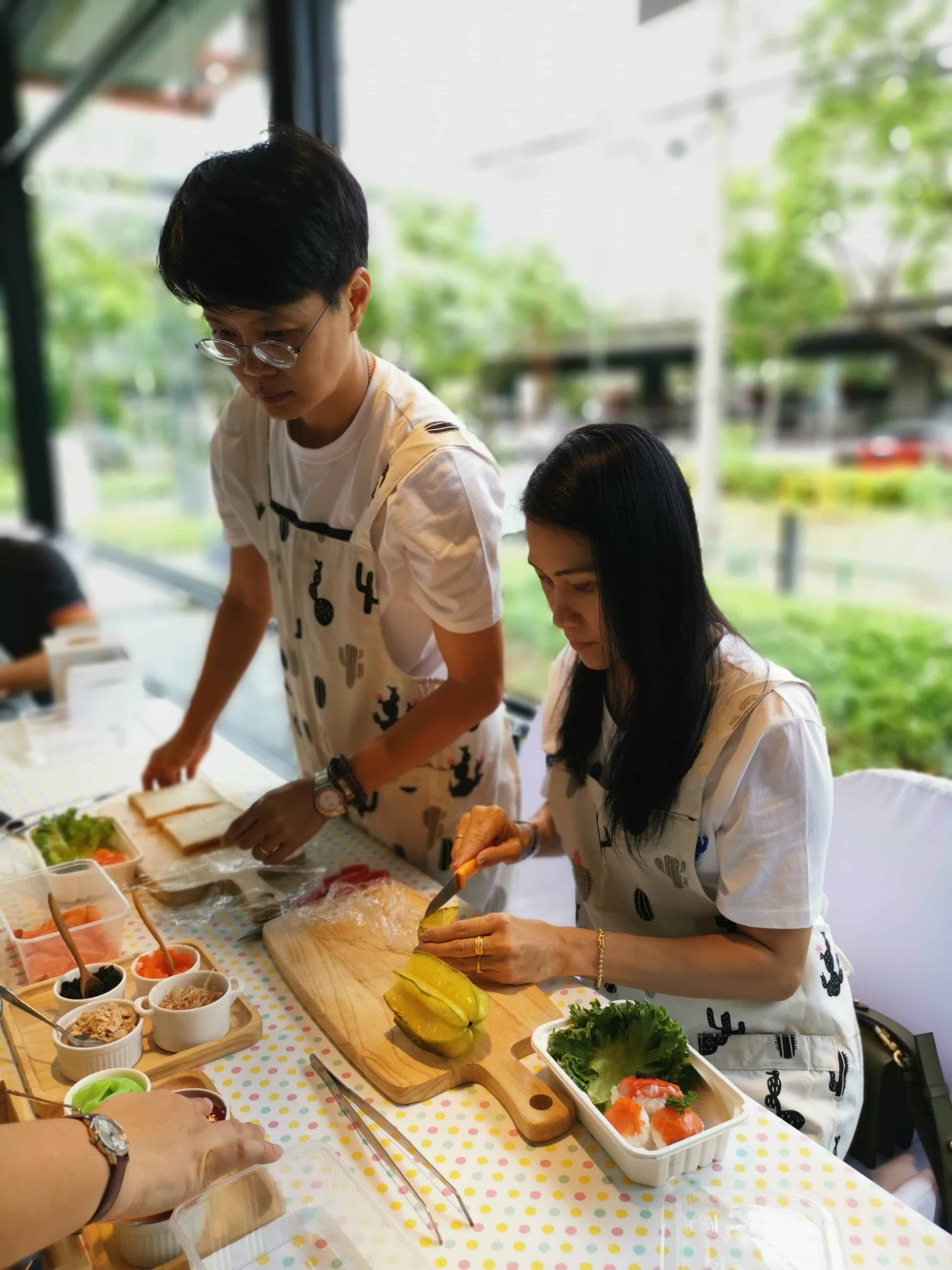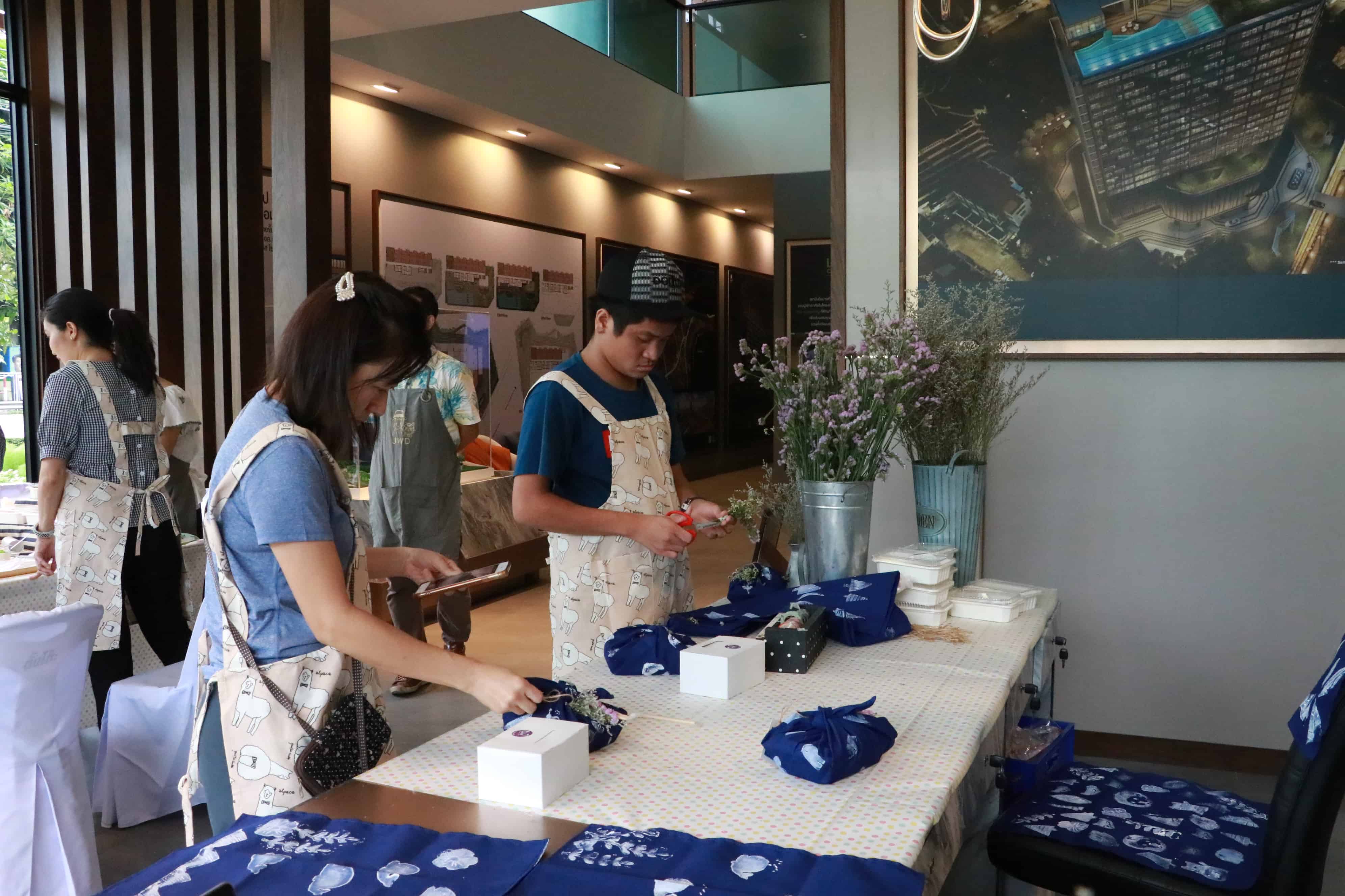 ณ สำนักงานขายโครงการ ให้สมาชิกลุมพินีได้ตกแต่งข้าวกล่องด้วยผัก-ผลไม้ สีสันสดใส ที่ดึงดูดความสนใจของเด็ก ๆ และครอบครัว รวมถึงการทำ DIY ผ้าห่อกล่องข้าวและการผูกกล่องข้าวสไตล์ญี่ปุ่น โดยวิทยากรผู้เชี่ยวชาญ